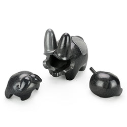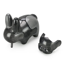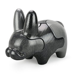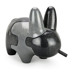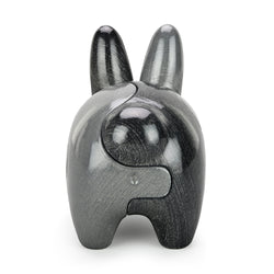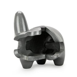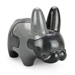 The iconic Labbit becomes a three-dimensional interlocking puzzle with classic face options that can be swapped out: both Smorkin’ face and Stache face are included. Designed to encourage interaction and conversation, every Locknesters Labbit is truly one-of-a-kind. Every piece is tumbled and finished by hand in Brooklyn, ensuring each one is unique. The complete puzzle/sculpture/toy (have a conversation about what to call it) measures approximately 6 inches long and 5 inches tall.