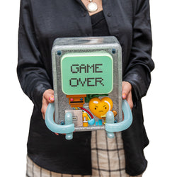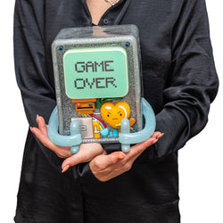 Give your Adventure Time display a glow-up with this Kidrobot Con Exclusive! The BMO Glow-in-the-Dark Vinyl Art Figure (Game Over Edition) gives fans an inside look at what makes the iconic character so special.