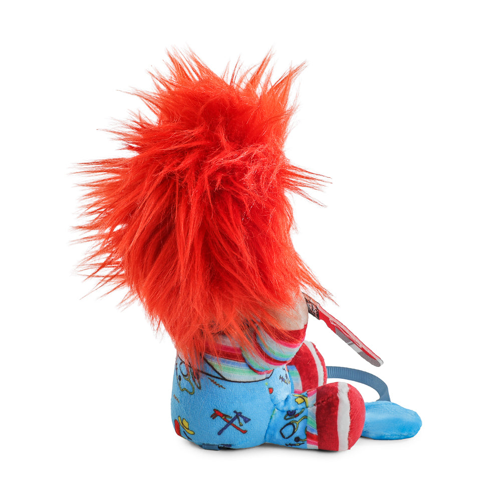 Don’t look now, but there’s a killer on your shoulder! From Bride of Chucky, it’s the Evil Chucky Plush Shoulder Phunny from Kidrobot! Kinda cute, kinda creepy, this horror collectible is a fun way to show off your fandom for the evil doll. Simply place the magnetic patch beneath your clothing and position Chucky directly over it to secure him on your shoulder. It’s sure to add a terrifying touch to any outfit! Measures 4.5 inches.