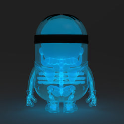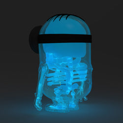 The adorably unintelligible Minions are back for Despicable Me 4! To celebrate the occasion, Kidrobot has brought to life the next edition in our sold-out Minion Anatomy Art Figure series: Glow-in-the-Dark Blue X-ray AVL Edition! You don't need X-ray specs to see inside this Anti-Villain League agent! Gaze through the clear outer shell of this 8-inch art figure, and you’ll find a sculpted, glowing blue skeleton, complete with a Minion’s favorite yellow treat.