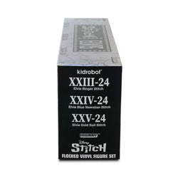 This 3-pack of big-head-little-body flocked vinyl art toys comes complete with three of the most iconic "Disney Stitch Inspired by Elvis®" art figures. Disney Stitch Hawaiian Elvis, Disney Stitch Gold Suit Elvis, and Disney Stitch Singer Elvis are just waiting to join your collection! All three flocked vinyl Bhunnys stand 4 inches tall and are designed with your favorite details of Experiment 626 and the King® of Rock ‘n’ Roll.