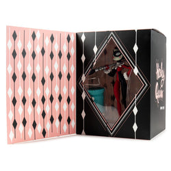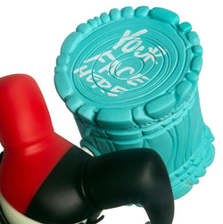 In 2014 Brand Peters was invited to join the DC's artistic elite as his illustrations of Harley Quinn were officially released in DC Comic's Harley Quinn Holiday Special #1: Get Yer Cheer Outta My Ear. Nearly four years later, Kidrobot is excited to bring Brandt Peters surreal take on Bruce Timm’s classic costumed Harley Quinn to the world of vinyl art toys with two collectible limited edition art figures.  Both of these new figures feature a marionette puppet stylization of Harley Quinn with her gripping an oversized mallet displaying "YOUR FACE HERE!" and "HA!" Standing 10 inches tall and produced using Kidrobot's legendary high-quality vinyl, this art figure comes in two colorways, this original red and black version (limited to 700 pieces worldwide) and a SOLD OUT Kidrobot.com exclusive Grayscale version (limited to 200 pieces worldwide).