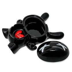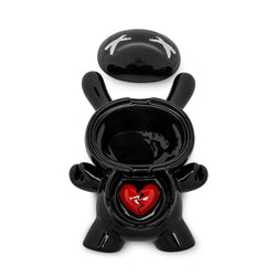 The high-gloss black ceramic Dunny wears its pain out loud, from its ripped red heart to its dead X eyes. This slick Kidrobot.com Exclusive serves as an ashtray, catchall, or straight-up statement piece.