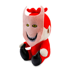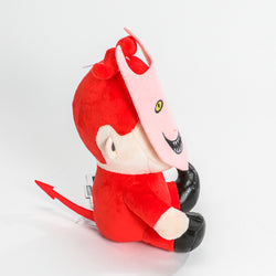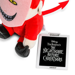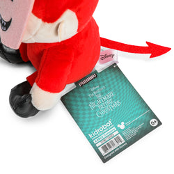 Celebrate Disney Tim Burton's The Nightmare Before Christmas with Lock, Shock, and Barrel! These mischievous trick-or-treaters in Halloween Town kidnap Santa Claus and deliver him to Oogie Boogie, much to the horror of Jack Skellington. Now you can have your own Phunny plush of Lock, the impish leader of the trio from the beloved Disney animated film. The Lock plush wears his red devil costume complete with tail, shiny black shoes, and creepy horned mask made of felt with embroidered details. The Nightmare Before Christmas Lock Phunny Plush by Kidrobot measures 7.5 inches.