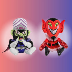 There’s no telling what can happen when two sinister villains join forces in their quest for world domination, especially when one is a mad scientist chimp and the other is a powerful demon with a keen fashion sense. Of course we’re talking about The Powerpuff Girls’ two archenemies: HIM and Mojo Jojo. Now you can own both with this Phunny Plush 2-pack by Kidrobot. Each one is 7.5 inches and perfectly captures their iconic features and signature attire—from HIM’s toothy smile and fancy tulle fringe to Mojo Jojo’s crazed pink eyes and striped helmet.